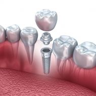 In der Zahnheilkunde versteht man unter Implantaten körperverträgliche Materialien, die operativ in den Kiefer eingepflanzt werden, um fehlende Zähne zu ersetzen oder Prothesen einen besseren Halt zu geben.